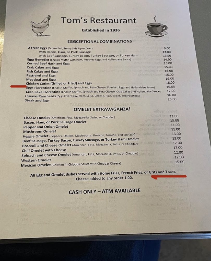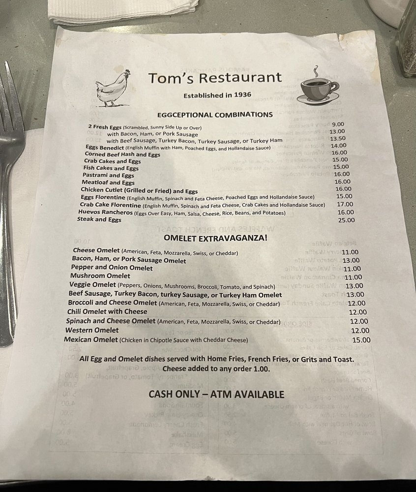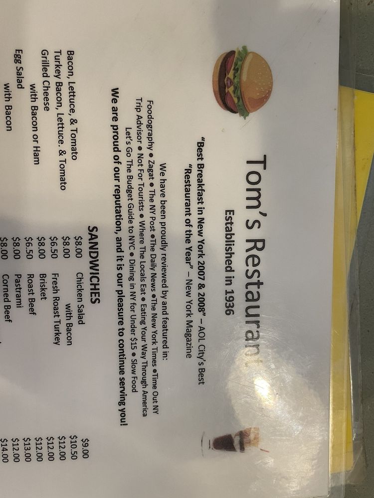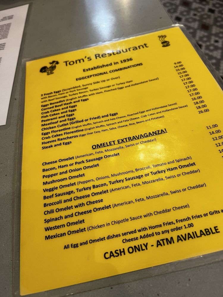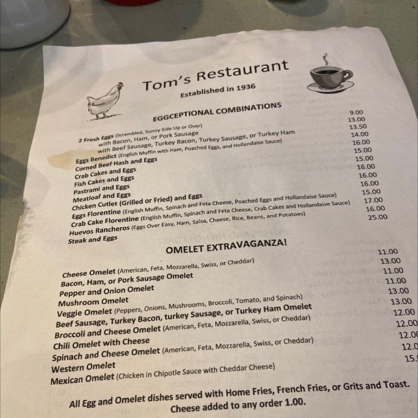 Tom's is a classic, authentic NY diner located in Brooklyn, NY. Known for its retro decor and delicious food, this diner is a neighborhood gem. The menu offers a variety of breakfast and brunch options, with standout items like the lemon ricotta pancakes and hearty waffles. Customers praise the generous portions and quick service, making it a popular spot for locals and visitors alike. The cozy atmosphere, complete with live music, adds to the overall experience of dining at Tom's. With a focus on providing quality food and a welcoming atmosphere, Tom's stands out as a must-visit dining destination in Brooklyn.